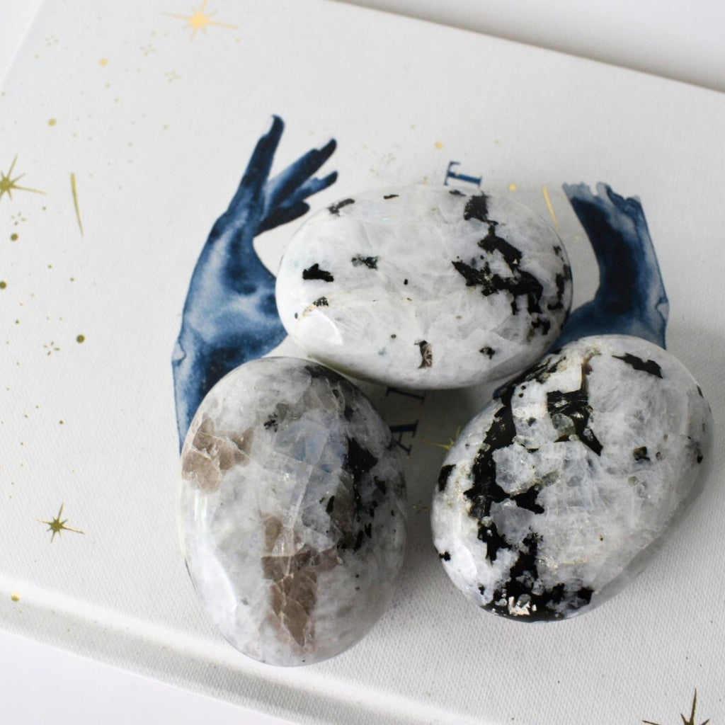 Rainbow Moonstone + Tourmaline Palm Stone