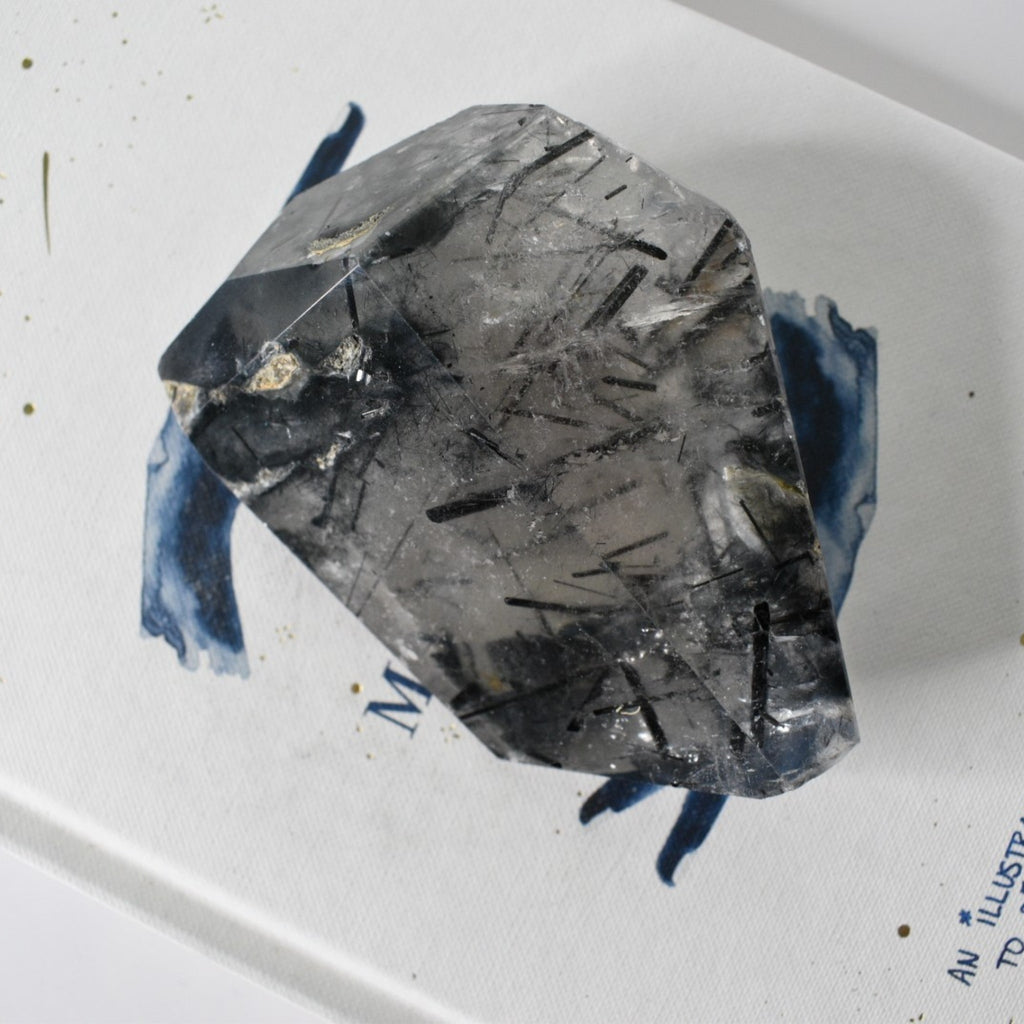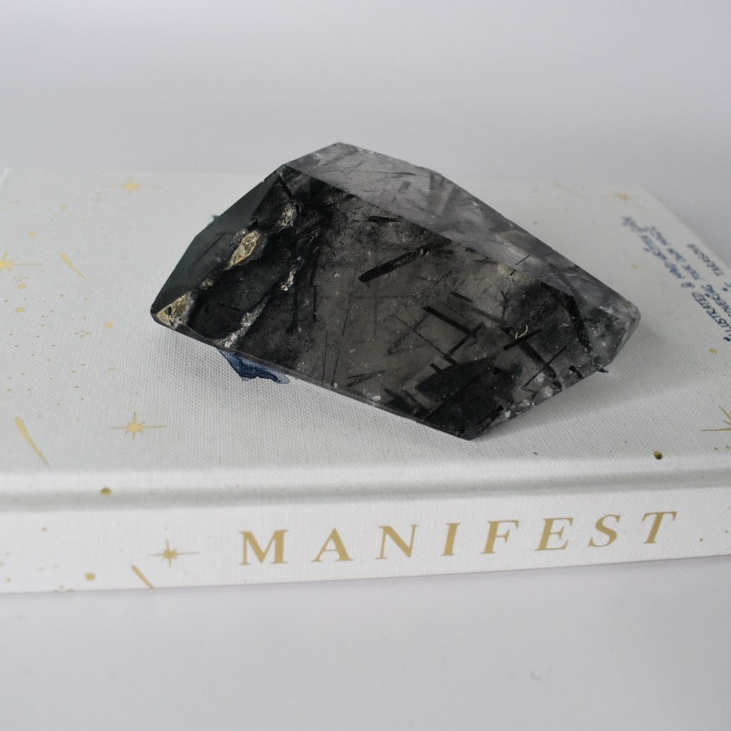 Tourmalinated Quartz, also known as Tourmalined Quartz, is a unique mineral containing black tourmaline (sometimes referred to as Schorl) needles included within a quartz structure.