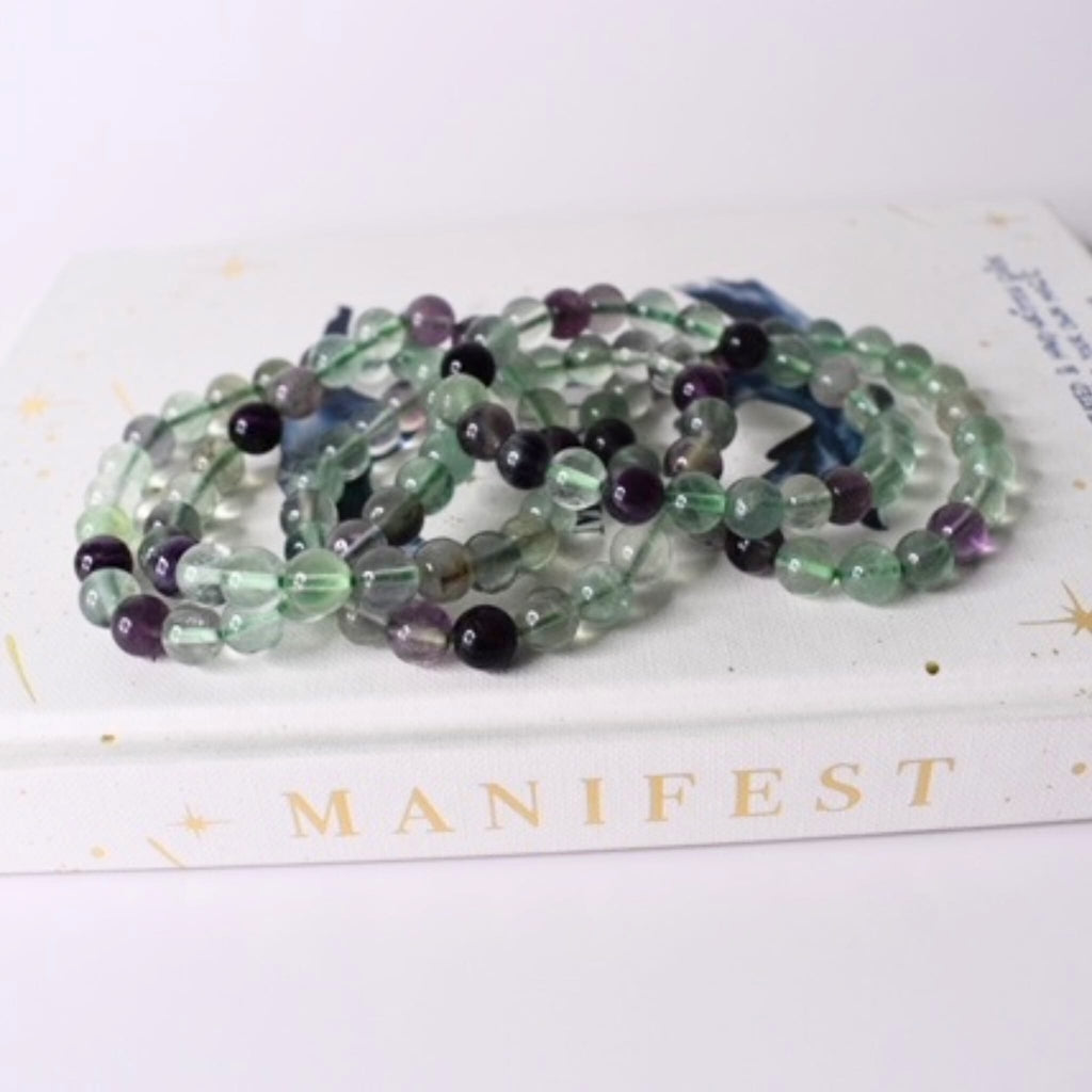 The origin of the word “fluorite” comes from the Latin word flux, which means to flow interchangeably. This word both refers to the way in which fluorites colors seem to shift and blend in the light, as well as the way it unblocks stagnant energy and promotes energetic flow.