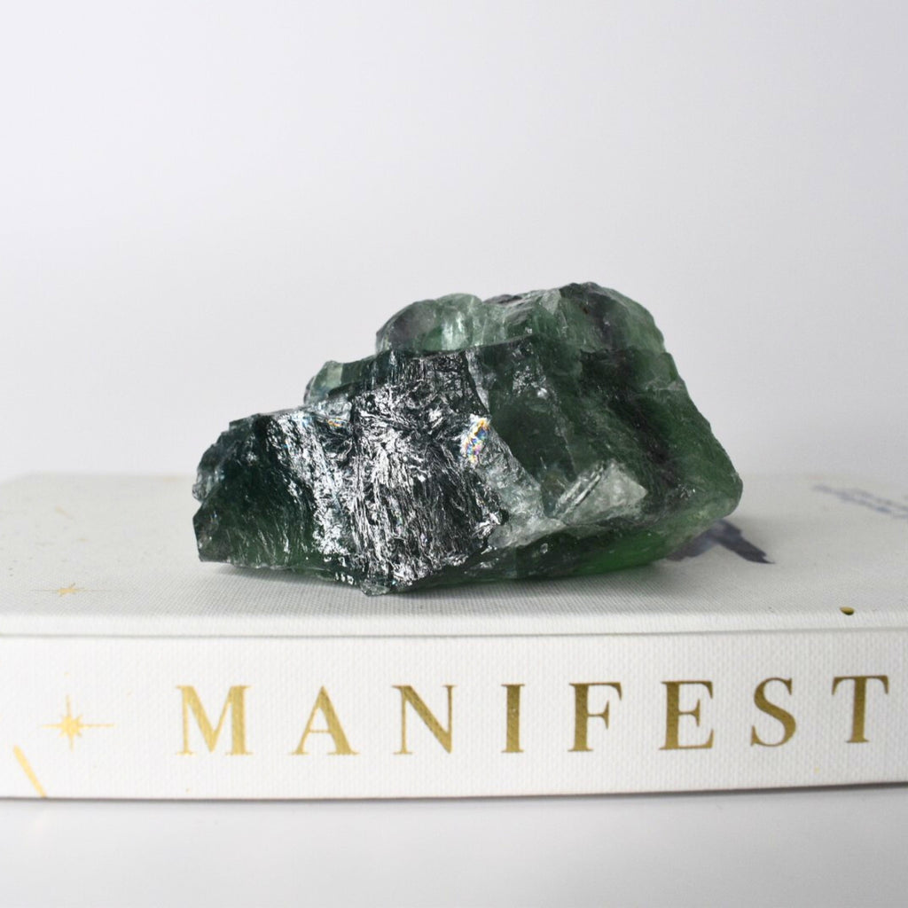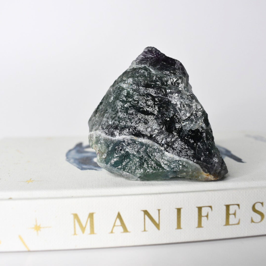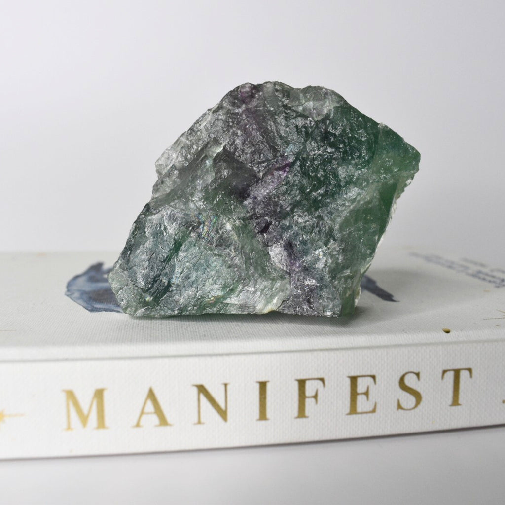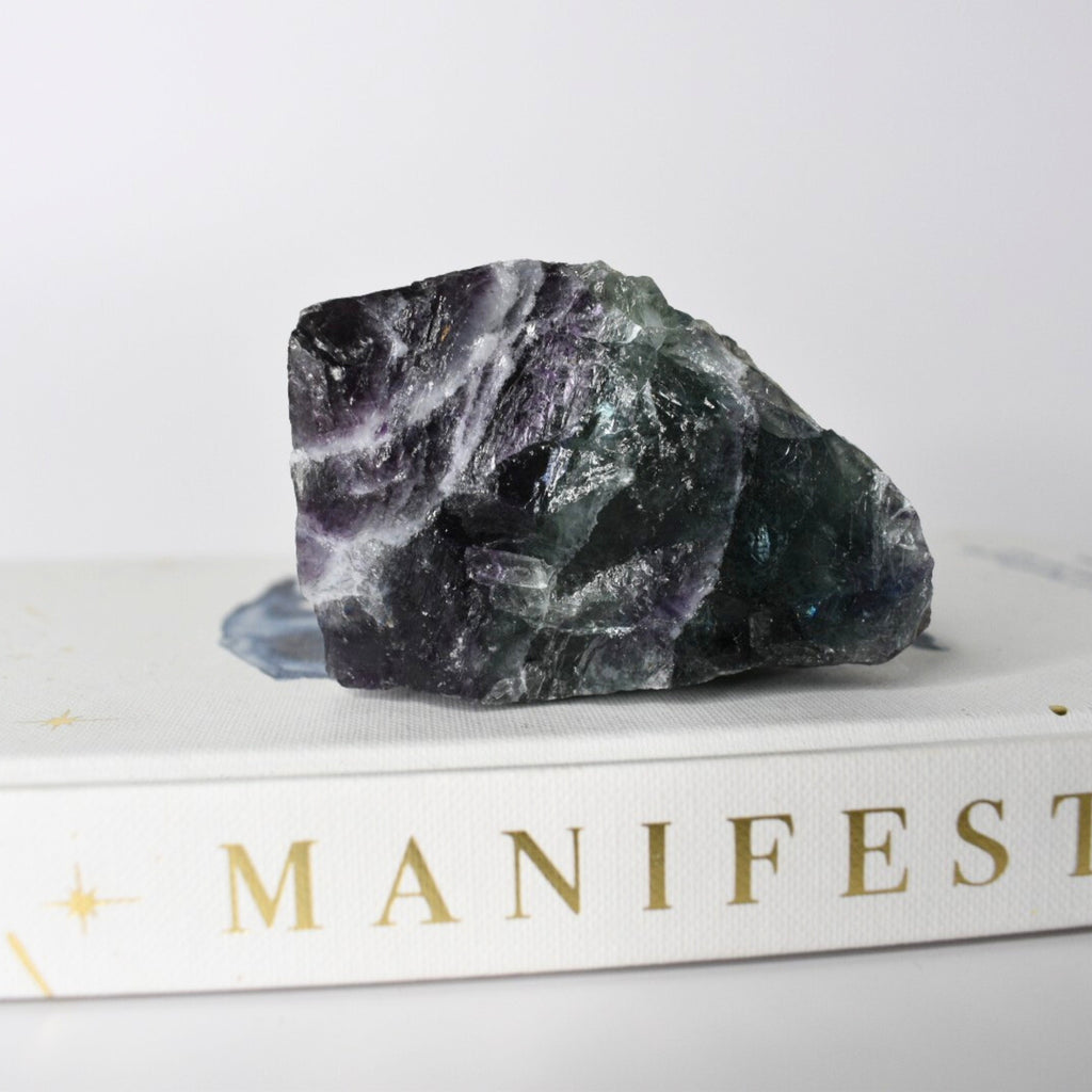 The origin of the word “fluorite” comes from the Latin word flux, which means to flow interchangeably. This word both refers to the way in which fluorites colors seem to shift and blend in the light, as well as the way it unblocks stagnant energy and promotes energetic flow.