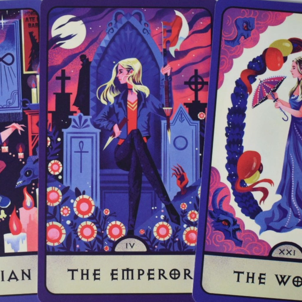ORIGINAL ART: Each of the 78 cards in this deck and the booklet features never-before-seen original Buffy the Vampire Slayer-themed art.