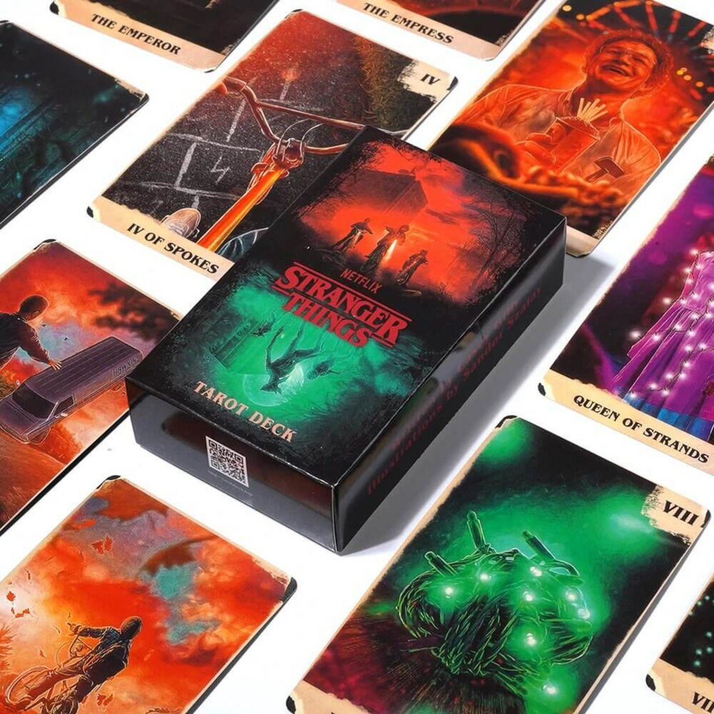78 TAROT CARDS: Each card depicts fan-favorite characters, imagery, and themes from Stranger Things representing the major and minor arcana.
