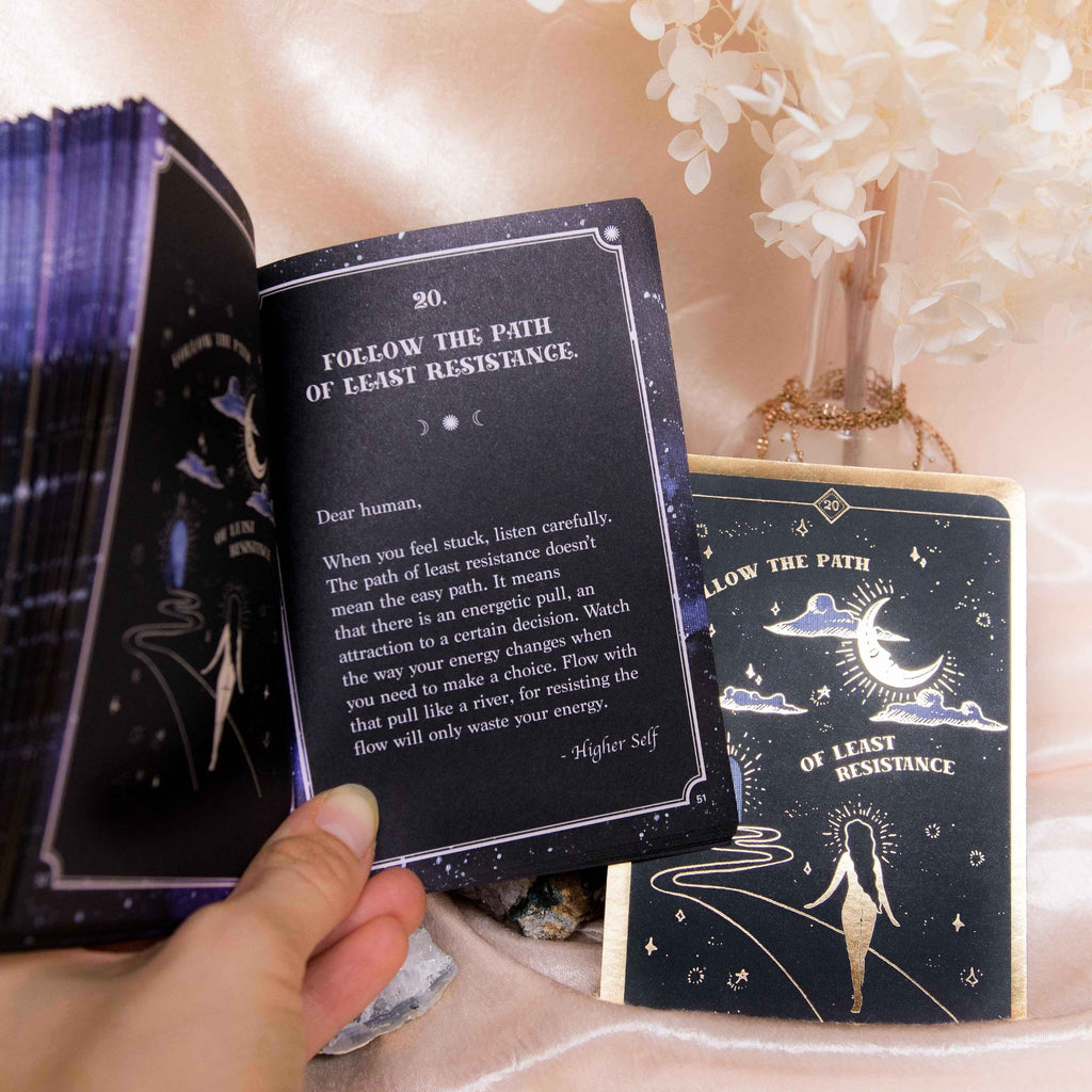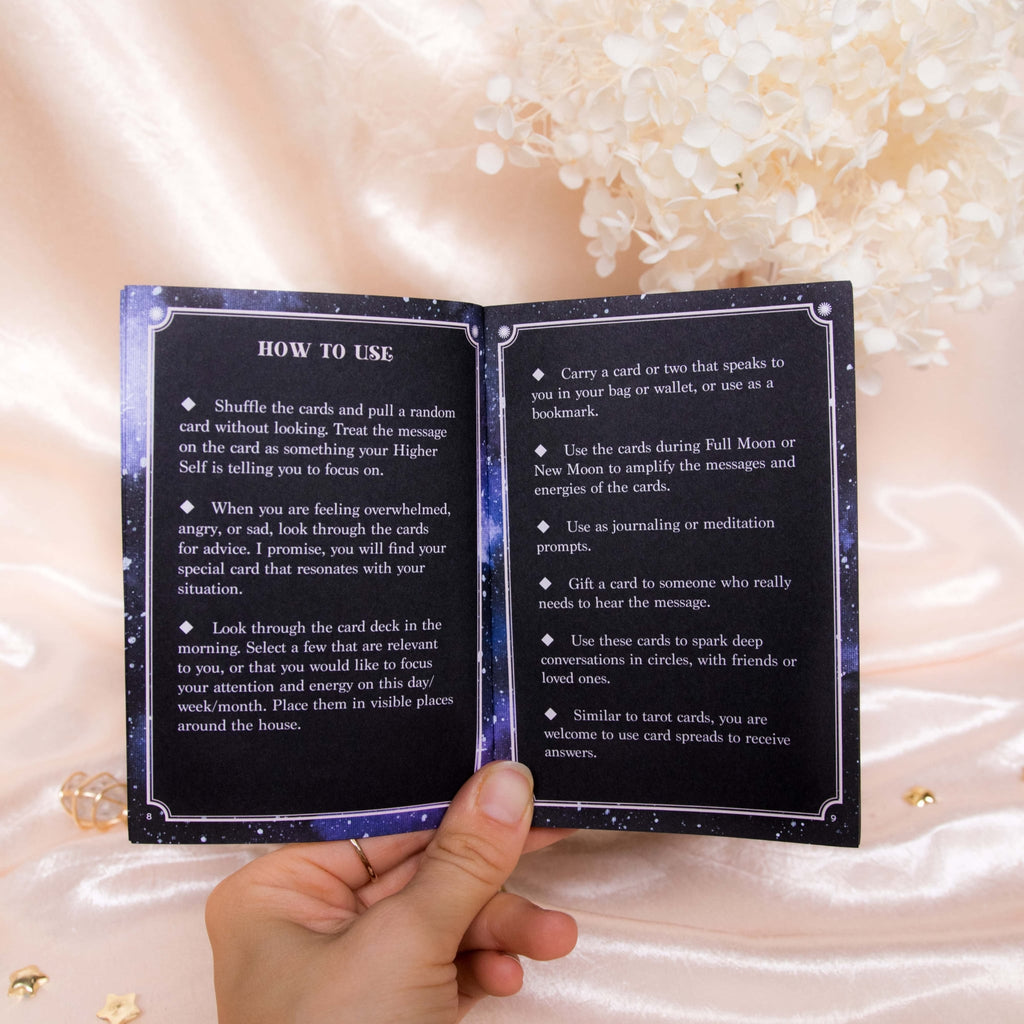 Deep meditation, a sense of infinite unity and love, heightened intuition and endless inspiration. Soul Whispers card deck came from that place, a place bigger than myself. The messages on the cards and in this booklet came from my personal realisations, experiences and beliefs. I feel that if my Higher Self - my soul - could speak, this is exactly what it would tell me. It would tell me that I am safe, that I am loved, that I can make anything happen. I truly believe these messages can be beneficial for anyone to hear. I also truly believe that we all share the same energy, all came from the same place, so if my Higher Self would tell me this, yours would, too. So, if it aligns with you and feels right to you, then you are welcome to use these cards to communicate with your Higher Self, and treat these messages as messages from your soul, or the Universe.